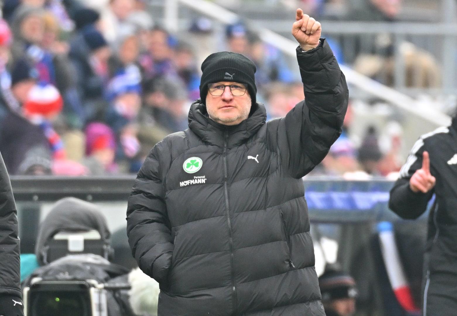 „Der FCK ist aufgrund seines Stadions und der Fans natürlich eine Heimmacht“, weiß auch Kleeblatt-Chefcoach Heiko Vogel. „Ich erwarte sie sehr fordernd und sehr aggressiv gegen den Ball – mit voller Wucht. Die werden wir spüren“, ist sich der 50-Jährige sicher, der in der Kulisse aber nicht unbedingt einen Nachteil für sein Team sieht. Er erklärt: "Ich glaube, dass es für uns kein Nachteil ist, weil man immer in einer Hab-Acht-Stellung ist." Es werde wichtig sein, gleich zu Beginn „Sicherheit walten zu lassen und nichts zuzulassen“.